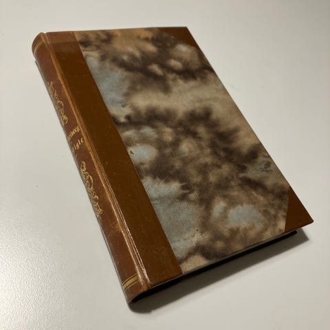 Privatbind: Indbundet i et i et smukt pastichebind af marmoreret papir med titelfelt i skind på forpermen. øvre kapitæl med afgnav, Se billeder.