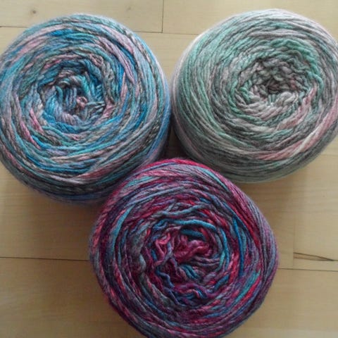 3 nøgler garn fra Hobbii. Et nøgle Jade (nypris 55,-), Mocktail (nypris 38,-) og Snowstorm (nypris 33,-). Se billederne for nærmere oplysninger om garnet.