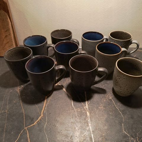 6 krus (4 i sort og 2 i grå) fra Bitz sælges. Er i Brande eller Herning. Samlet pris 100kr.