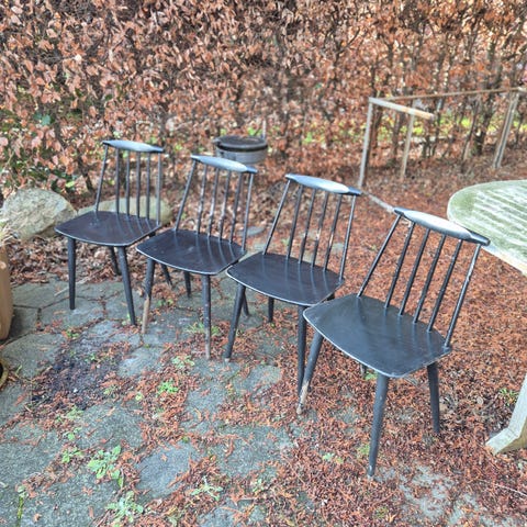 Børge Mogensen FDB 74 5 4 spisebordsstole i massiv eg. Istandsatte og ompolstret med sort skind ved prof. møbelpolstrer. Meget velholdte og fejler intet. Prisen er pr. stk