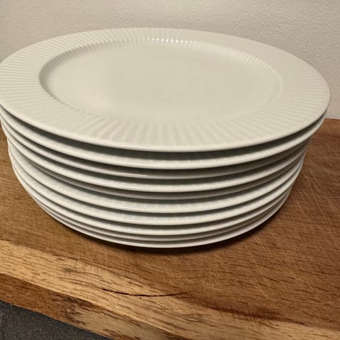 8 dybe tallerkener i hvid med riflet kant. Pr stk 70kr / samlet 475kr