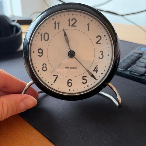 Med lette brugsspor. Virker 100% som det skal. Simpel og ligetil vækkeur / bordur med let justering af tid og alarm. Et let tryk oplyser ur skiven ved nattetide. Fragt 44kr GLS