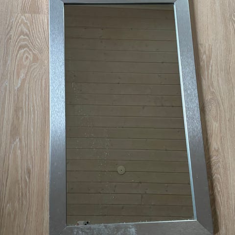 Spejl m alu / børstet stål ramme. H128 B48 D2 cm