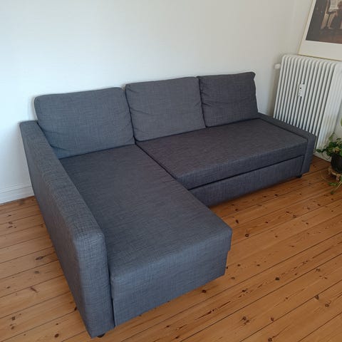 Ikea Friheten sofa - brugt. Den virker som den skal og har fået skiftet hjul (til udtræk af sovesofa) for 3 måneder siden.