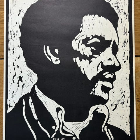 Der er lidt forskellige holdninger til om portrættet er forfatteren Eldrige Cleaver eller om det Bobby Seale, som var en fremtrædende person i The Black Panthers organisation.