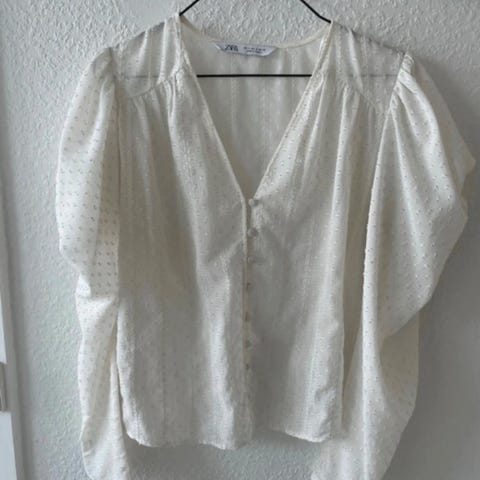 Bluse, Zara, str. 36, Hvid, Næsten som ny, Hvid bluse med blonde stof og korte ærmer. Zara str. M.