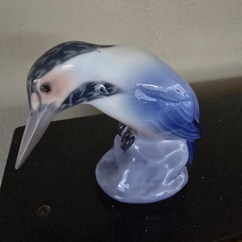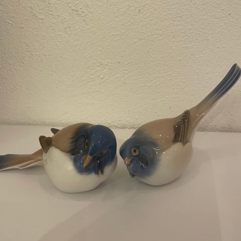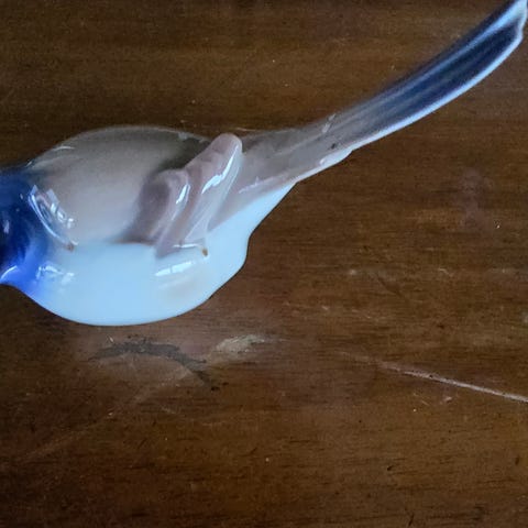 Bing og Grøndal fuglefigur i porcelæn blå og brun