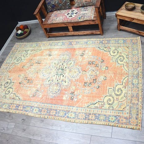 Gümüşsuyu Uld Gulvtæppe er brugt men står i god stand. Tæppet trænger til rens.