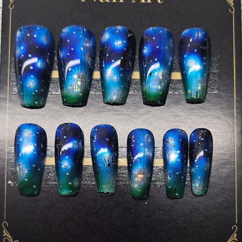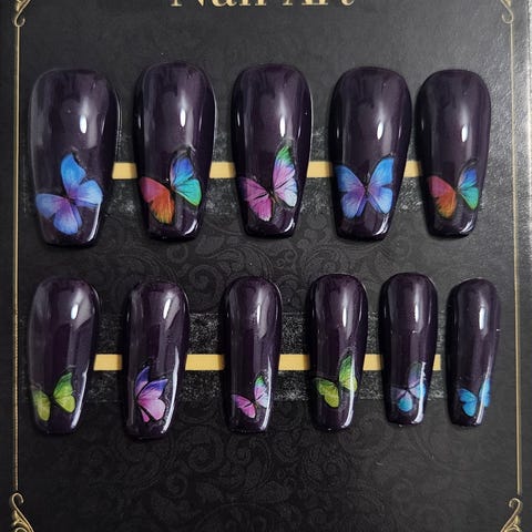 Håndlavet press on negle med negle lim, fil, og neglebånds skubber. pris og nr fremkommer på billedet, slået op flere steder. Har flere annoncer med forskellige negle. Køb af et sæt inden kl 19 sendes samme dag. Priser fra 75 kr. Til 150 kr.