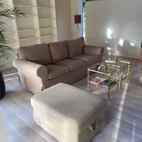 Betræk er fra IKEA Ektorp og NYT i koksgrå lidt velour agtigt.