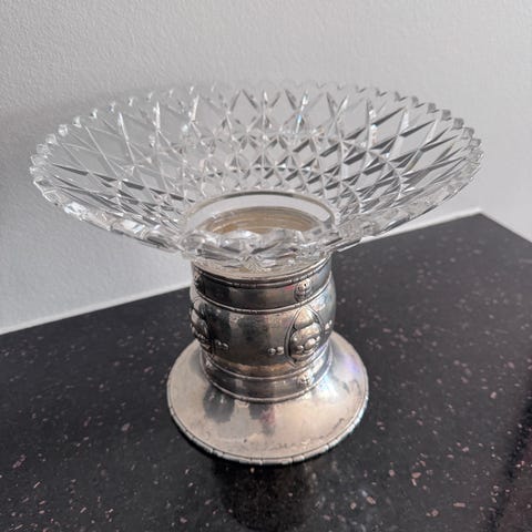 serveringsfad, forsølvet+glas, 1930 år gl.
