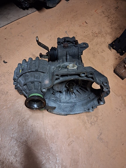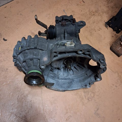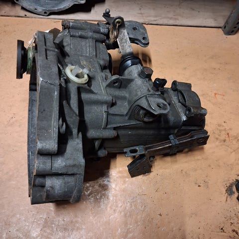 Brugt 4-trins manuel gearkasse, til VW Golf I - 1,1 og 1,3 liter benzin fra BJ, 1974 gearkassekoden er GU.