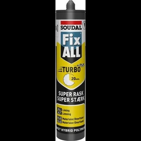 SOUDAL Fix All Montagelim er et super hurtigt hærdende, fleksibelt klæbemiddel, der bygger på Soudals egen SMX Polymer teknologi. Dette montagelim kan bruges på alle typer overflader, selv fugtige og ikke-porøse overflader, hvilket gør det til et alsidigt og pålideligt valg til dine byggeprojekter.
