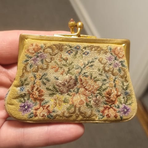 Mangler snor i toppen. Smuk pung med mikro glasperler
