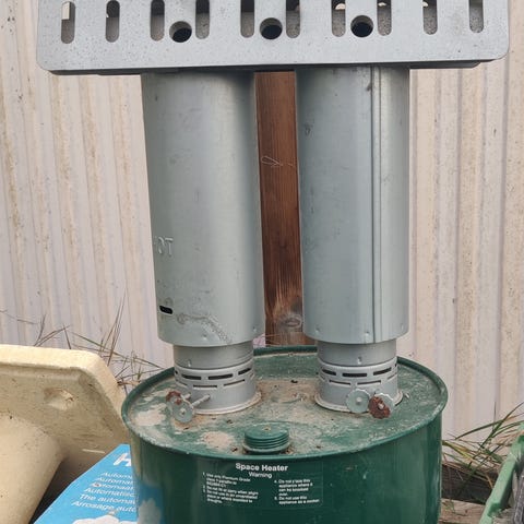 Har en tank på 4.5l og bruger lampeolie eller lugtfri petrolerum.