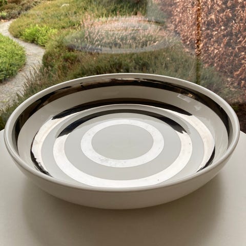 Keramik, Omaggio fad, fra Kähler med sølv striber. Diam. 30 cm.