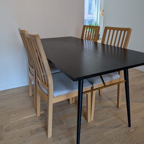 Træ spisebord fra Ilva med 2 tillægsplader.