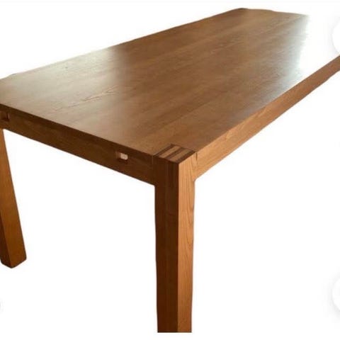 Er 210 cm langt, 95 cm bred og 75cm højt. Kan blive 3 meter med tillægsplader i.