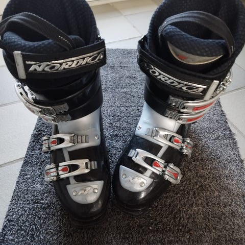 Nordica Easy Move skistøvler i sort og str 315. De er ganske fine til begyndere eller børn. Ingen skader men dog ridser fra brug.