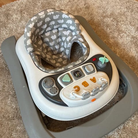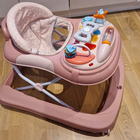 Gåstol købt på Jollyroom. Næsten ikke brugt og fremstår som ny. Kan indstilles i 3 forskellige højder og spiller et par sange. Står pt. i Hundested og kan afhentes i København N efter aftale.