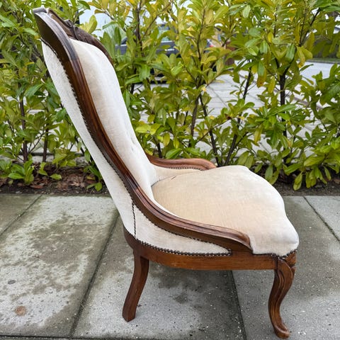 Stolen fremstår i pæn og velholdt stand med almindelige brugsspor, men ingen skader eller huller i stoffet.