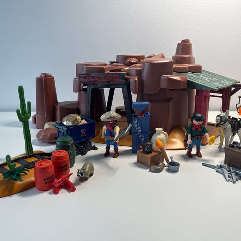 Stort fort med mange figure og tilbehør. Lige fra flotte heste til en masse tnt. Det har et vagttårn, et lille hus og en fangekælder. Der er mange kaktuser og andre planter rundt om. Sættet er næsten komplet og kan sælges med rabat med min anden lignende western guldmine.