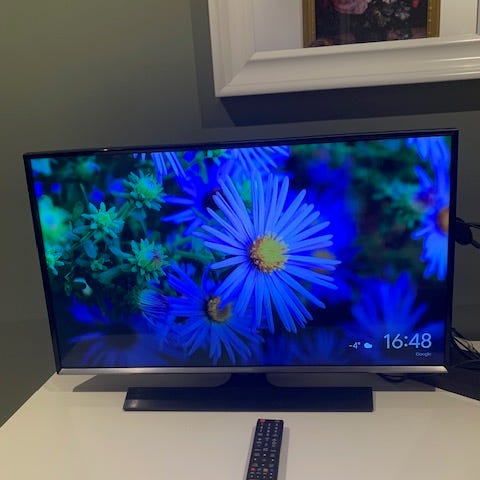 Det har en del år på bagen og selve modellen stammer fra 2018 men det fungerer upåklageligt stadig og har god lyd og billede samt indbygget chromecast.