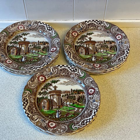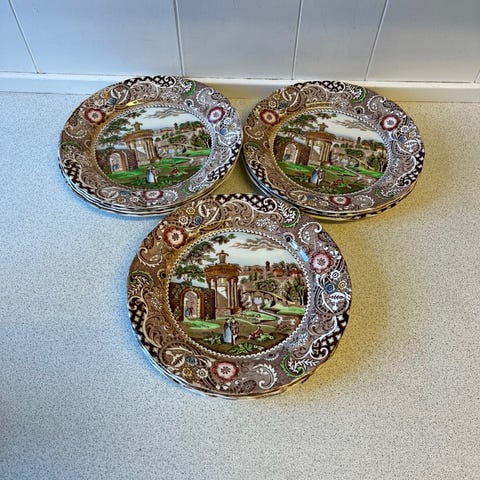 Fajance, Dybe tallerkner, W.R. Midwinter Landscape, 6 Stk. dybe tallerkner fra serien Landscape produceret at W.R. Midwinter England sælges for 25,00 kr. pr. stk. De har en diameter på 23 cm og er alle hele og fine uden skader og skår. Kan sende med GLS og DAO.