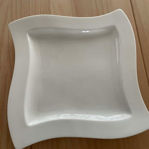 Der er en stor skål hvor der er slået et par skjalder af. Ellers helt.