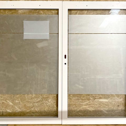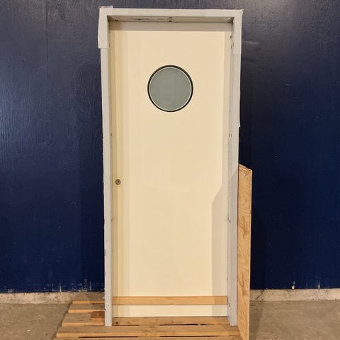 Branddør EL60 i med karm uden bundstykke, i rustfrit stål og brandglas