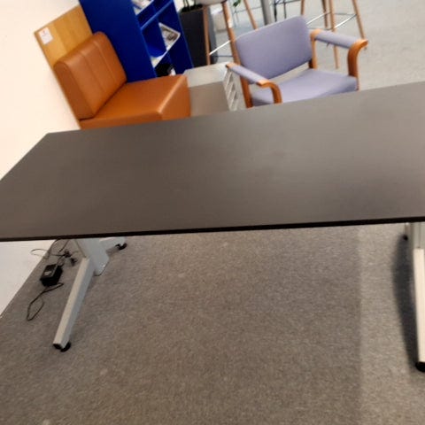 Sofabord med hæve-sænke bordplade skuffer, skjulte rum og åben hylde, kulgrå/sor