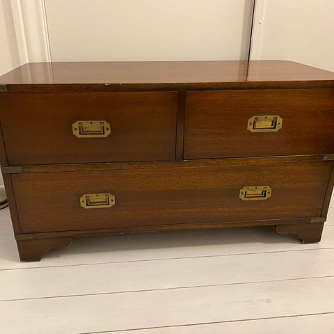 Klassisk military kommode med greb og beslag af messing