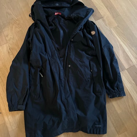 Fjällräven Frakke i sort farve, størrelse M til kvinder. Aldrig brugt, købt for lille. Jakken er fremstillet med G-1000 materiale, der kan behandles med Greenland Wax for øget vandafvisning og holdbarhed.