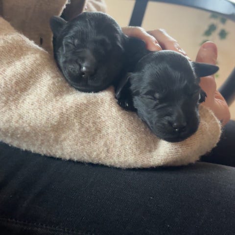 Hendes far er sankt Bernhard hendes mor er new foundlænder / berner sennen - så hun bliver en stor hund - hun vejede 39 kg da hun var 7,5 måned