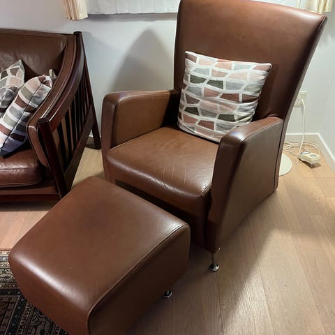 Pæn lænestol. Brugt mest med skind på at ingen mærker. Skind medfølger IKKE.