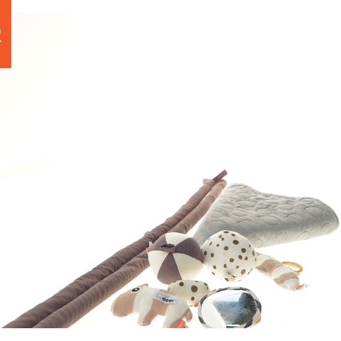 Done by Deer put-kasse med forskellige figurer og Spire aktivitetskasse med flere sider, der indeholder forskellige aktiviteter og former til leg og læring. Aktivitetsskassen har udskæringer til formgenkendelse med tilhørende træfigurer hvor der er magnet på samt tilhørende fiskestang, hjul, tandhjul og andre interaktive elementer.