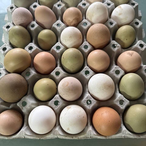 Jeg byder på 60 æg fra mine fritgående kyllinger til 300 DKK inklusiv emballage og fragt.