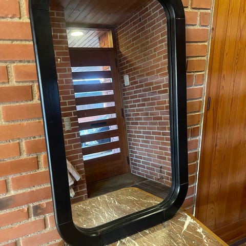 Spejl i træ med oval form og drejefunktion