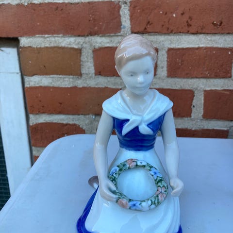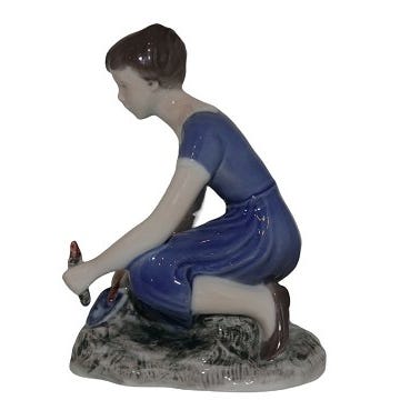 Denne fine pige med sin vandkande er en klassiker fra Bing & Grøndahl. Hun har været en del af vores samling længe, men nu hvor vi rydder op, skal hun have lov at glæde en ny ejer.