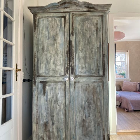 Har prøvet at tage billeder så I kan se de ridser der er. Der er meget patina og det højre skab kan være lidt trickyt at lukke sommetider men måske i vil have bedre held med det. Se billeder for detaljer eller skriv hvis i har spørgsmå