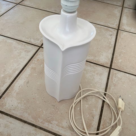 Hvid bordlampe i fin stand. Mål ca. ø8 cm og H= 27 cm.