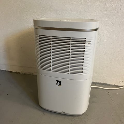 Wasco luftaffugter i beige farve. Enheden har et digitalt kontrolpanel med flere funktioner til styring af luftaffugtning. Velegnet til at reducere fugt i indendørs rum og forbedre luftkvaliteten.