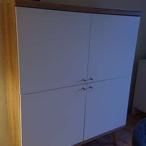 Flot skab med muligheder, skabet er renoveret slebet og vokset. Monteret med glashylder og lys