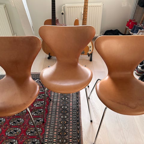 Arne Jacobsen, 3107, Serie 7, Syverstol, spisebordsstol, spisestuestol, Fritz Hansen, dansk design, designklassiker, designerstol, krom stel,vintage design, retro design, Scandinavian design, Arne Jacobsen stol.