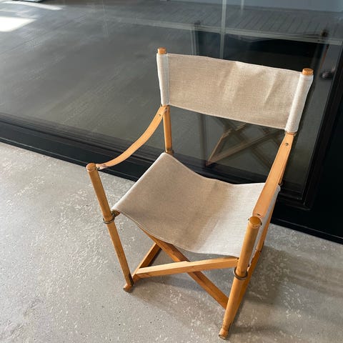 MK 76 Stativ til folde stole , let brugt sælges for halv pris af nypris - solen og lyset har gulnet træet derfor passer det bedst, til stole der også har været i brug - nypris 3.200,-