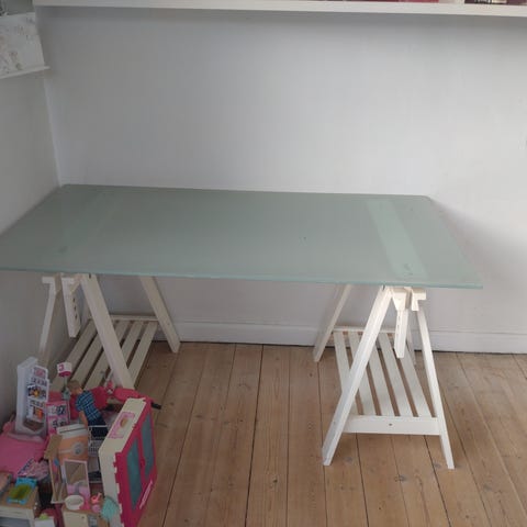 Bordpladen er af matteret glas.