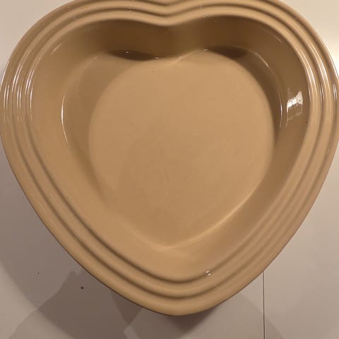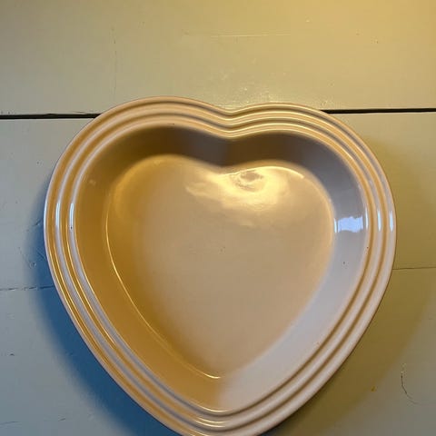 Le Creuset hjerteformet ovnfast fad i rød og creme