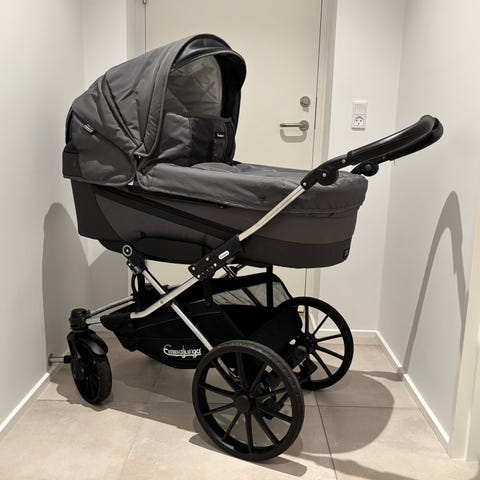 Ubrugt barnevognskasse / liggedel fra Emmaljunga med det lange liggemål på 98 cm.