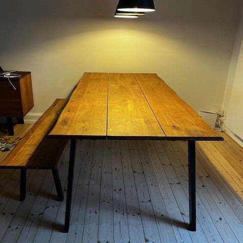 Enkle brugsspor, men ellers fin stand. Kan slibes og olieres på ny.