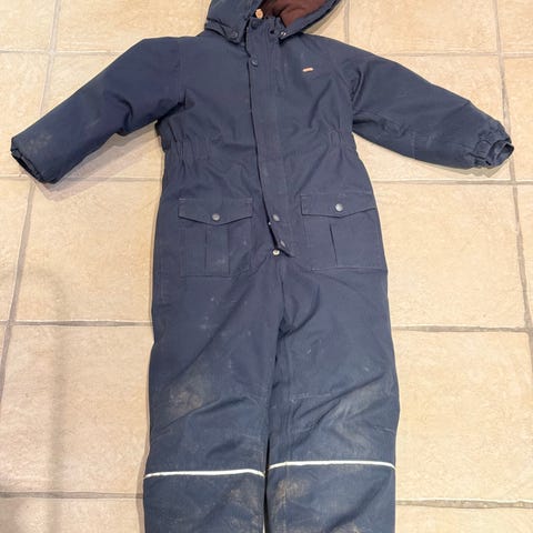 Klassisk blå flyverdragt med fleecefor, thinsulate og reflekseffekt. Ikke noget lir. Holder vand, sne og kulde ude og varme og selvtillid inde. God til det store barn man troede var vokset fra flyverdragt, til skituren eller bare som ekstra til når det går galt (og du ved det går galt) Standen er ok pæn og modellen kan vel nærmest ikke slides op så om et år eller to kan du selv sælge den videre til samme fornuftige pris😎